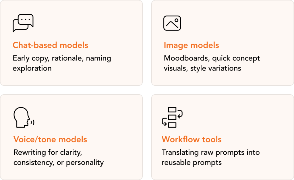 - Where AI is not expected (ex: final brand expressions, high-fidelity deliverables)