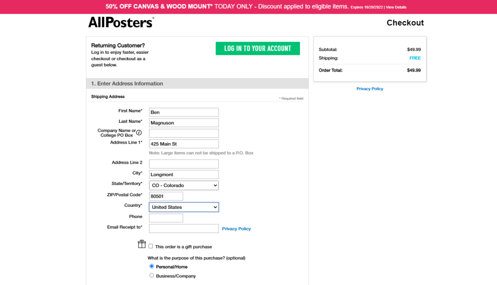b) Have “Address Line 2” as a hidden field unless the buyer really needs it. Like in the below image, the user has already filled the address, so they don’t need another open field for the address.