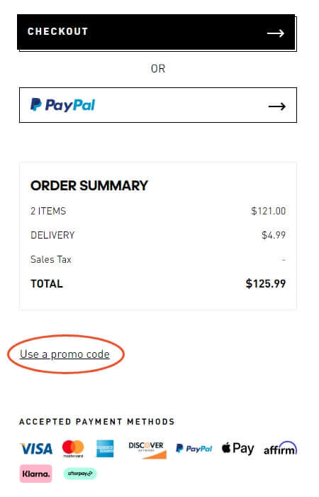 On the other hand, Adidas provides a collapsible Promo Code inserting window.